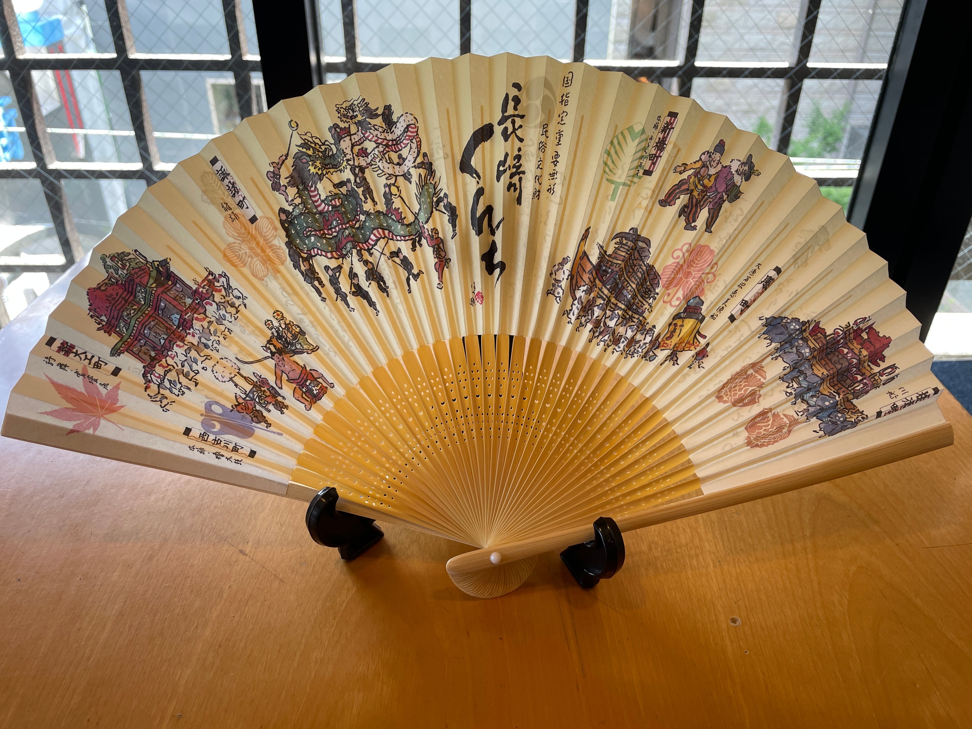 扇面の所狭しと描かれた演目がとても目を引き、くんち好きの方にも一目置かれる一品となっております。