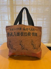 令和六年 長崎くんちの踊町 八幡町の弓矢八幡祝い船の手ぬぐいを柿渋染めして、トートバッグに仕上げました。