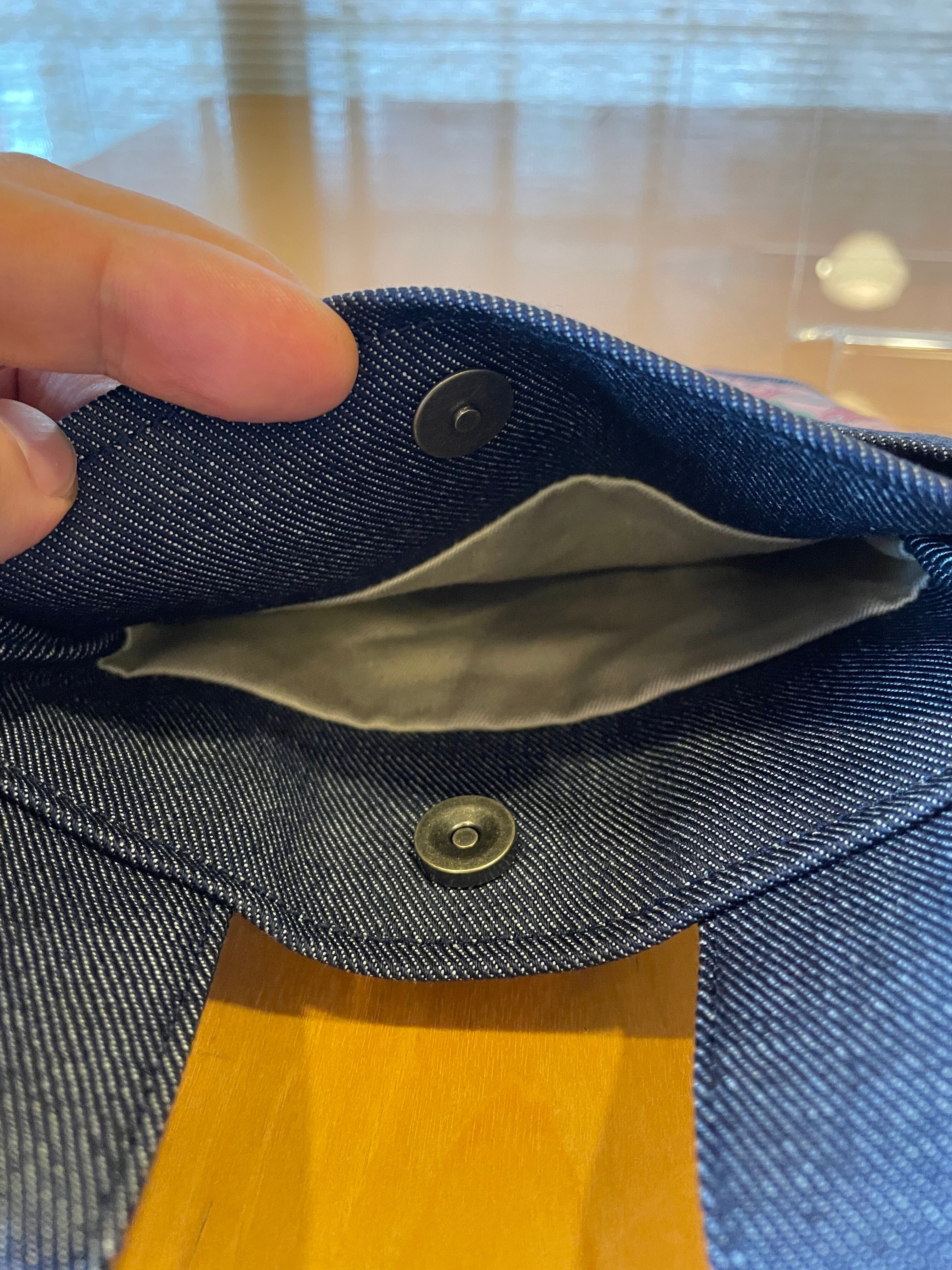 ポケットは二カ所、メイン部分はマグネットホックを使用してあります。